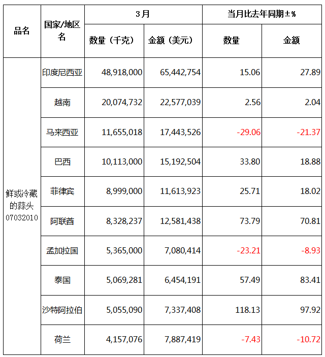 大蒜:3月份出口量同環(huán)比雙增!