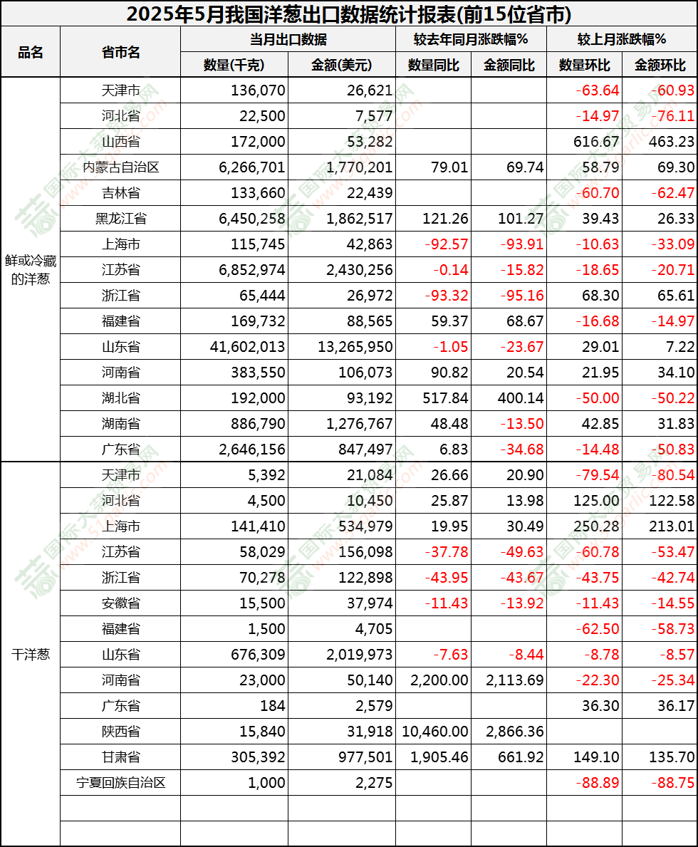 2025年5月洋蔥出口數(shù)據(jù)(按省市)