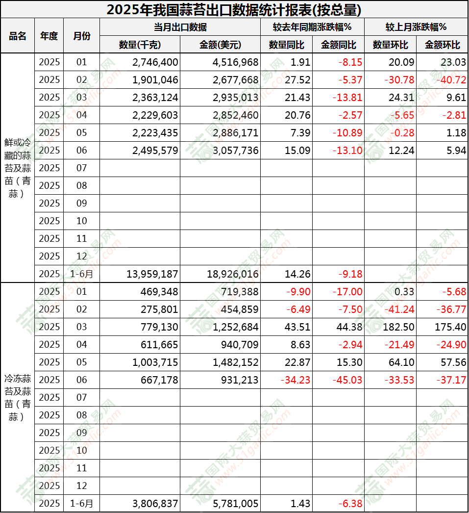 2025年6月蒜苔出口數(shù)據(jù)(按總量)