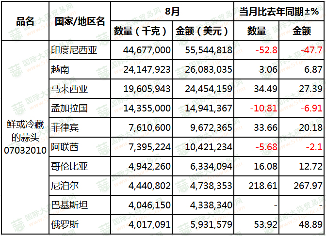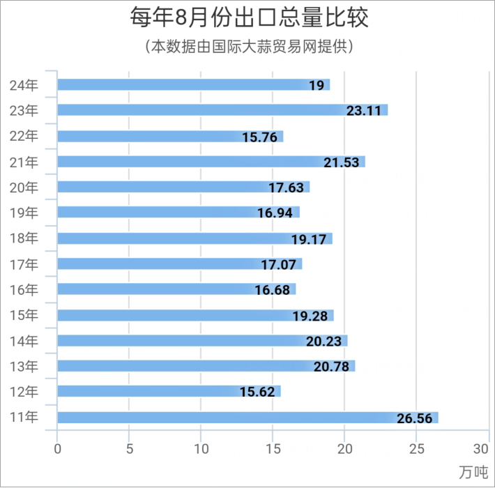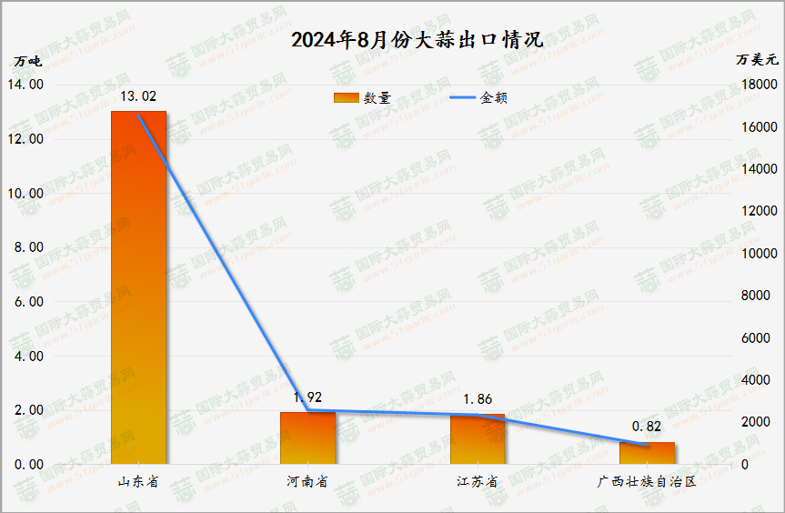 8月大蒜出口量同環(huán)比雙降