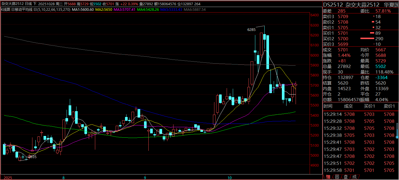面對復(fù)雜多變的市場,華夏國際大蒜電子盤為市場參與者提供了更為直觀的市場溫度計。從雜交大蒜2512合約的近期日K線走勢來看,正處于一種多空膠著的震蕩格局,電子盤的價格發(fā)現(xiàn)功能,在此次波動中得到了直接體現(xiàn)。